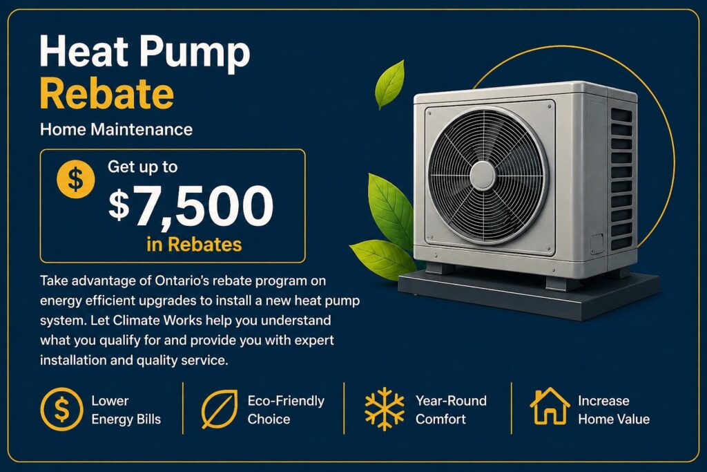 Take advantage of Ontario's rebate program on energy efficient upgrades to install a new heat pump system. Let Climate Works help you understand what you qualify for and provide you with expert installation and quality service.